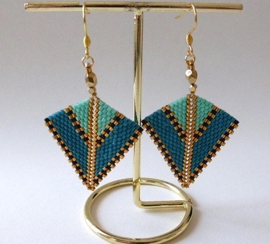 - Technique : Tissage peyote diagonal (sur 24 rangs)