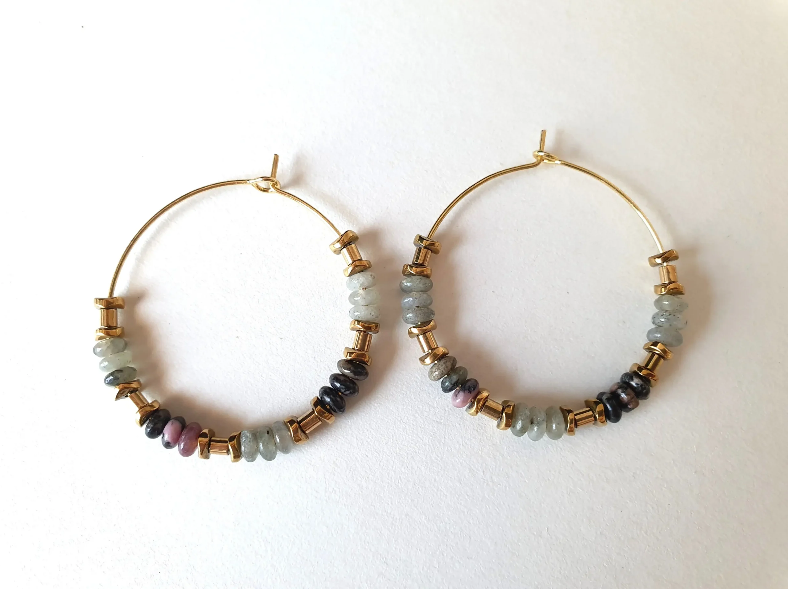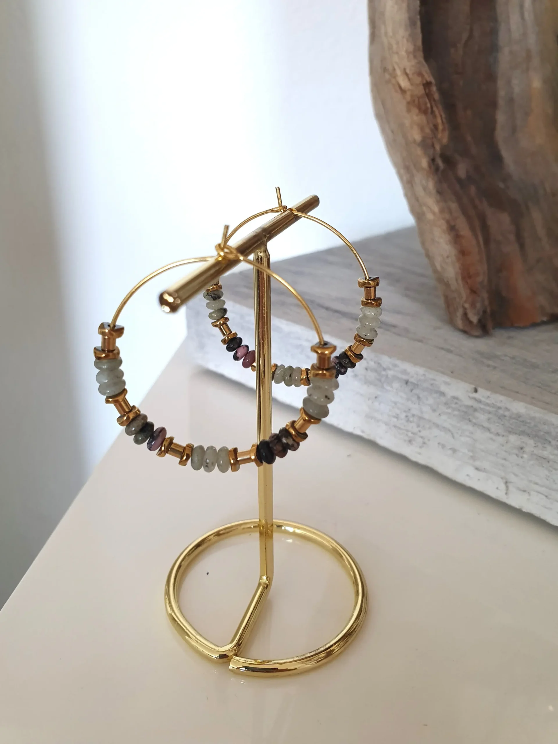 - Nom : Boucles d’oreilles créoles Vitae – Jade gris
