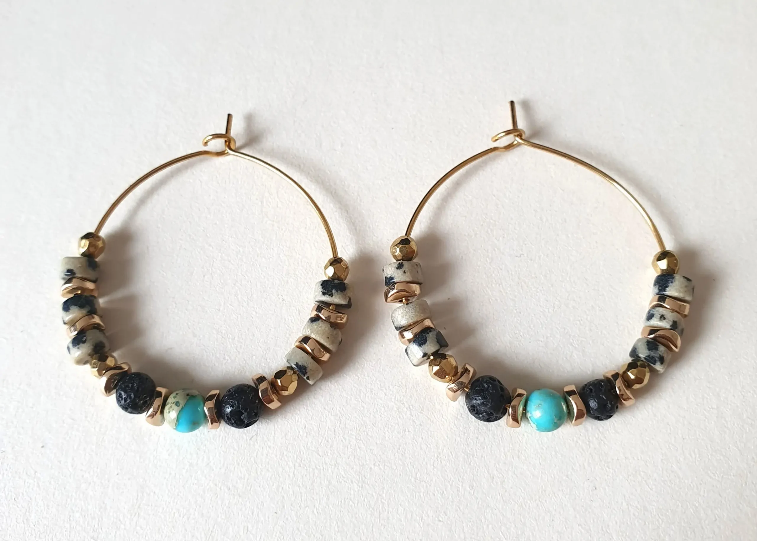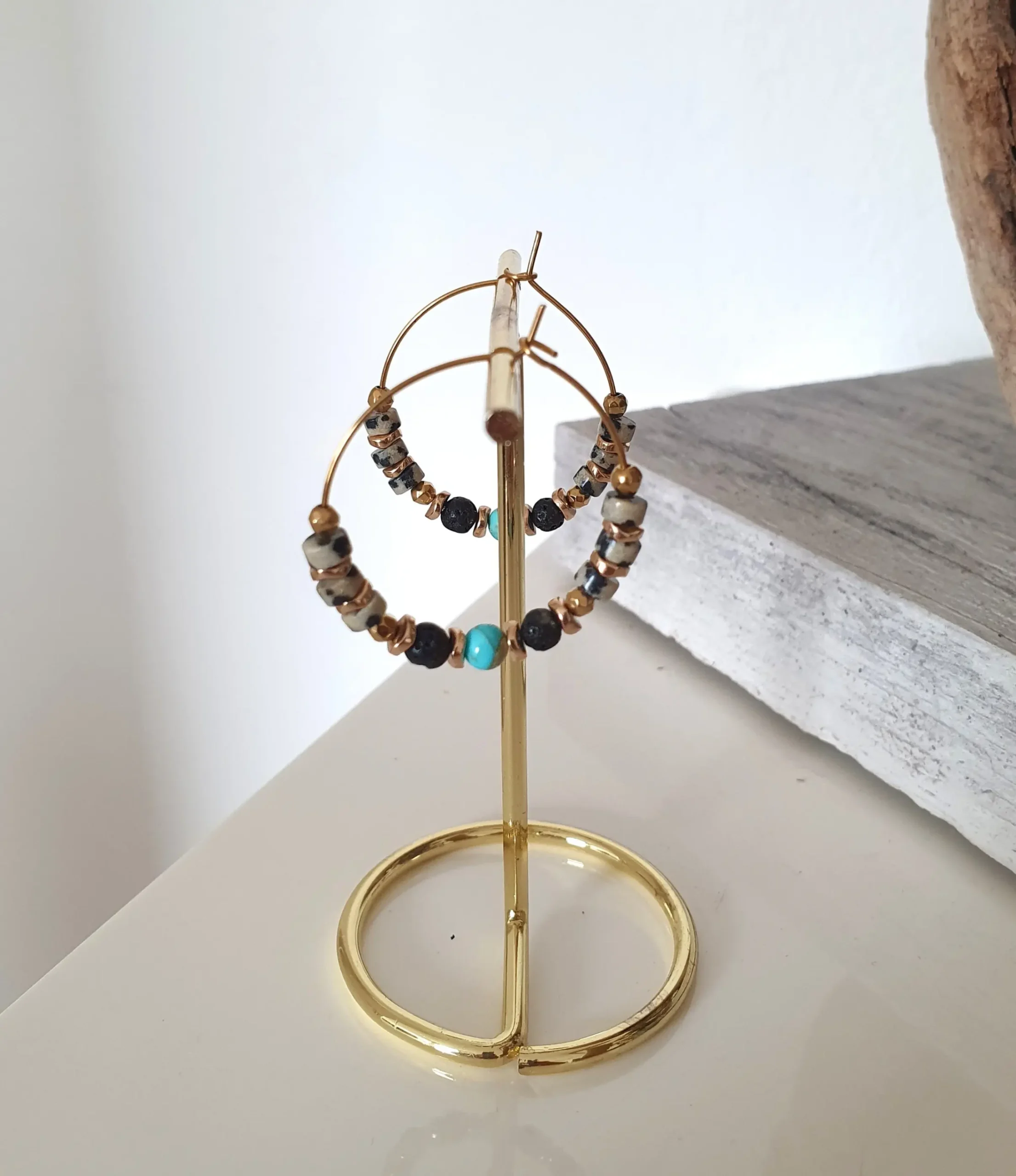 Boucles d’oreilles créoles Vitae – Jaspe dalmatien
