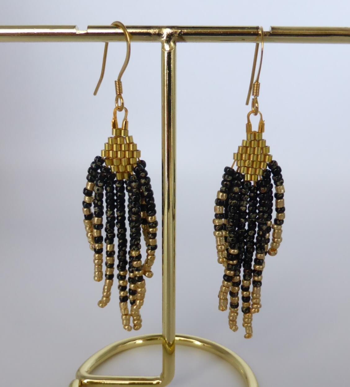 Boucles d’oreilles à franges en perles miyuki tissées avec crochets en acier inoxydable doré.