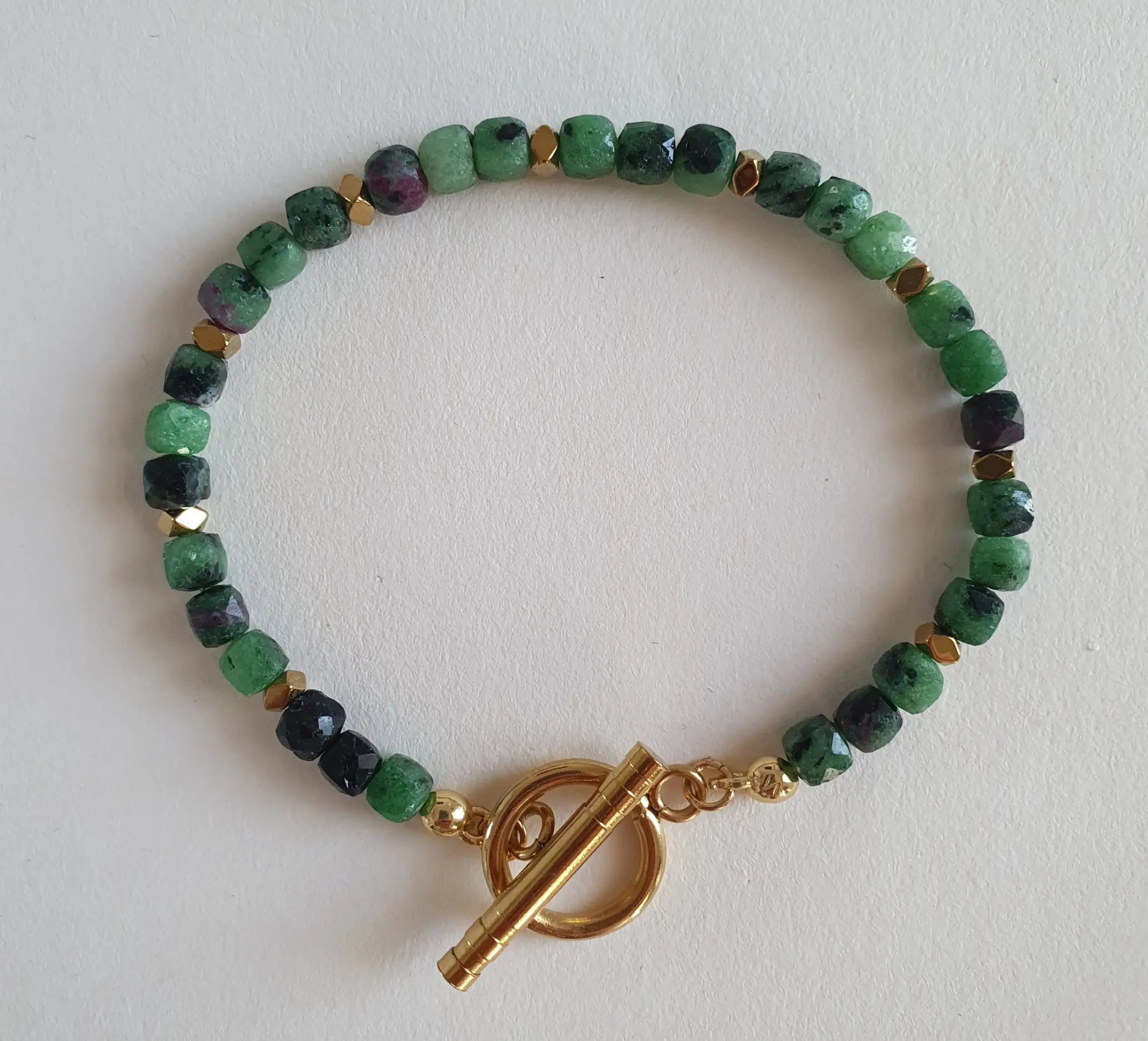 - Version « verte » : Perles facettées en pierre gemme naturelle d’épidote